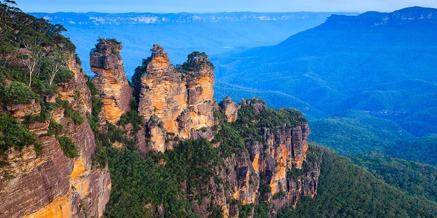 Travelling to New South Wales offers you the chance to enjoy part of your holiday in the Blue Mountains. The mountain region, located just 30 miles from Sydney, has UNESCO World Heritage status and actually appears to be blue when viewed from a distance, thanks to the oil from eucalyptus trees which disperses the sun's rays and creates a blue hue.