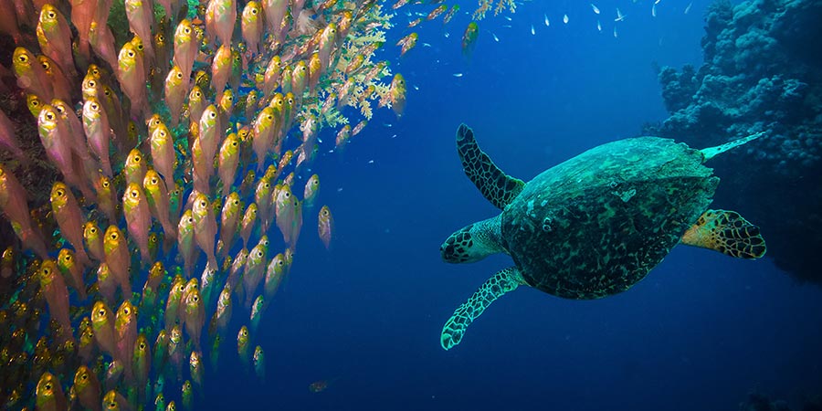 The world's largest coral reef system, the Great Barrier Reef is home to thousands of species, stretching over 1,800 miles (3,000km) from the coastal town of Bundaberg up to the tip of Cape York, almost parallel to the Queensland coast. It is not until Cape Tribulation, just north of Port Douglas that the reefs come right to the shore and meet the tropical rainforests of the Wet Tropics. The breathtakingly beautiful coral stretches further than the Great Wall of China and is the only living thing on earth visible from space.