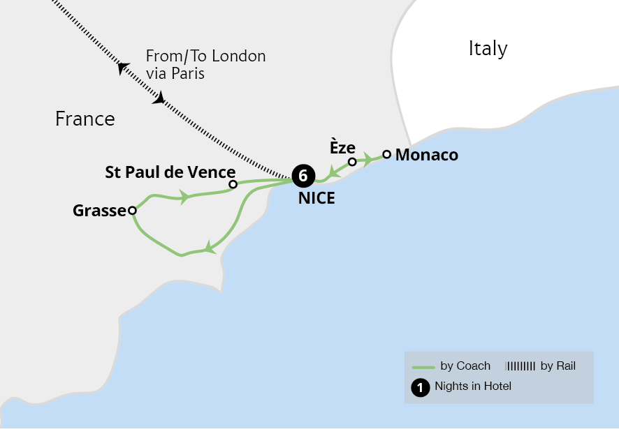 Admire the decorated floats, colourful costumes and spirited atmosphere of the captivating Nice Carnival on this rail holiday to the French Riviera. From reserved grandstand seats, bask in fantastic views of this vibrant extravaganza and explore the shimmering Côte d'Azur. Uncover the charm and history of Nice on a guided tour and watch the...